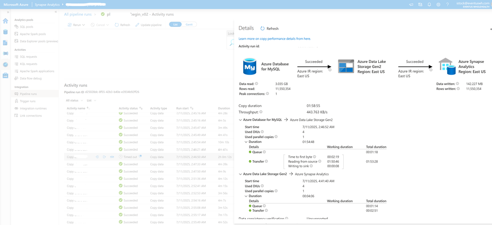 Copy Activity Successful, But Times Out