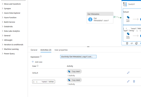 How to name Case in Switch activity using Get Metadata output