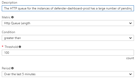 Well here is a screenshot of the alert that is configured in app services -> alerts.