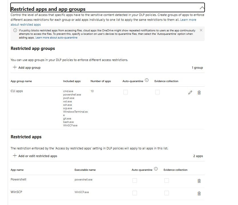 Next step is to prevent exfil using Cli apps. This is where the issue is.. Not working.