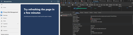 I'm trying to access the Privacy Risk Management page, but it’s not loading. I believe the issue might be related to the endpoint that is attempting to retrieve the tenant settings, but I'm not entir...