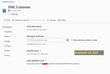 I scanned assets in Microsoft Purview using two methods: 1. Importing assets directly from an on-prem SQL Server 2. Importing lineage from Azure Data Factory However, Purview is tagging the fully ...