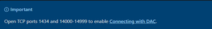 barry960 the documentation does not explicitly mention the association between port 13399 and the DAC in the context of SQL Server listens, but it is a special connection used for administrative tasks.