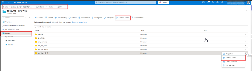 Azure Files Manage Access is missing