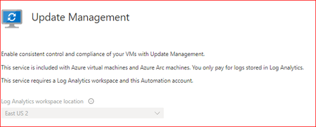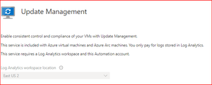 I created an Automation Account successfully in the East US region. When I go the enable the Update Management it defaults to East US 2 of course this will cause it to fail. See the error below.   ...