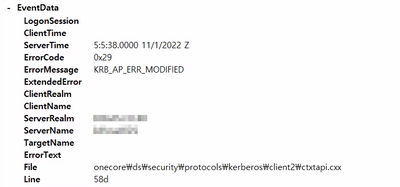 To verify the error, we checked the event viewer and the error 0x29 KRB_AP_ERR_MODIFIED appears with event ID number 3. The AD connector server has the same event log continuously.
