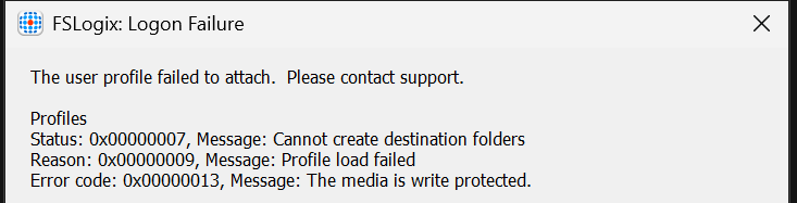 AVD Environment- FSLogix Profile Login Failure – Write Protected Error