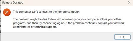 Getting a strange error occasionally from the Azure Remote Desktop client for my customer. I don't think it is really about virtual memory on the client computer, and it occurs before any connection...