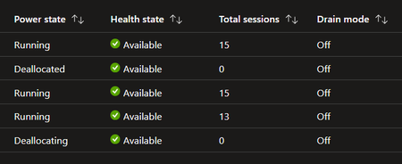 When viewing in the list, health state is not updating, see 2nd VM in this list, shows deallocated, correct, but health state Available 2nd VM in the list when you click into the session hos...