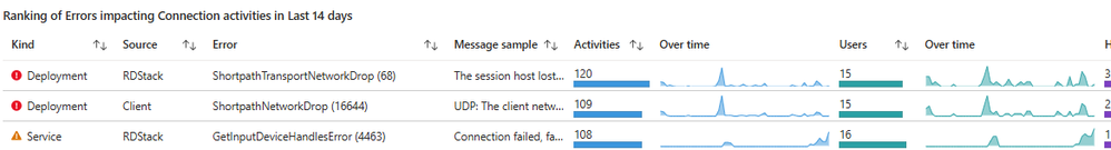 - Frequent ShortpathTransportNetworkDrop (68) and ShortpathNetworkDrop (16644) errors