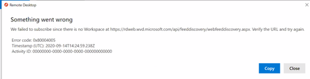 Windows Remote Desktop Client bug - "failed to subscribe since there is no workspace"