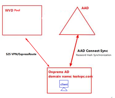 But what about below topology, when we use PHS/PTA as the synchronization method in AAD connect, also we connect WVD ...