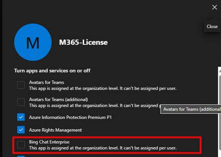 Can't enable Bing Chat Enterprise