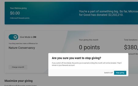 Switch off "Give with Bing"
