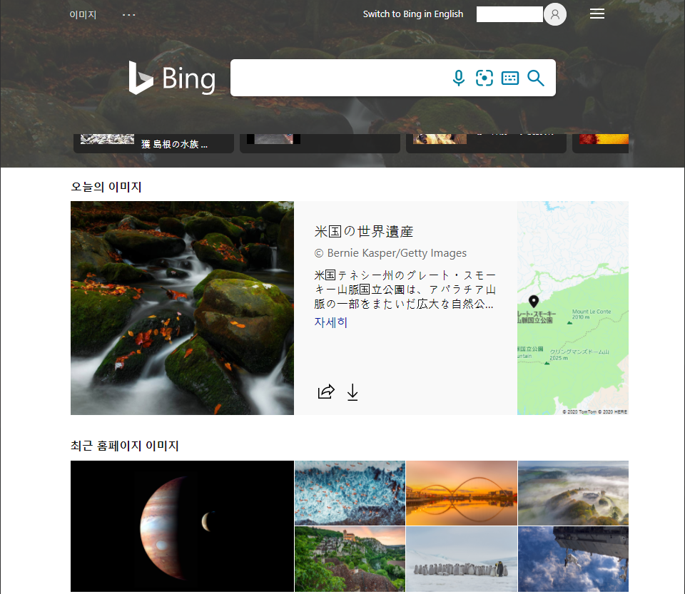 Below is the layout when the Bing country/region is Japan.