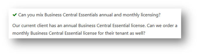 Can you mix Business Central Essentials annual and monthly licensing?