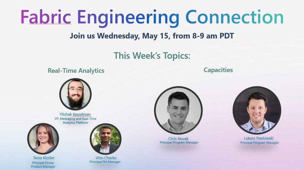 Join us this Wednesday, May 15, from 8-9 AM PDT for the weekly partner community call, Fabric Engineering Connection! This week's call will feature: