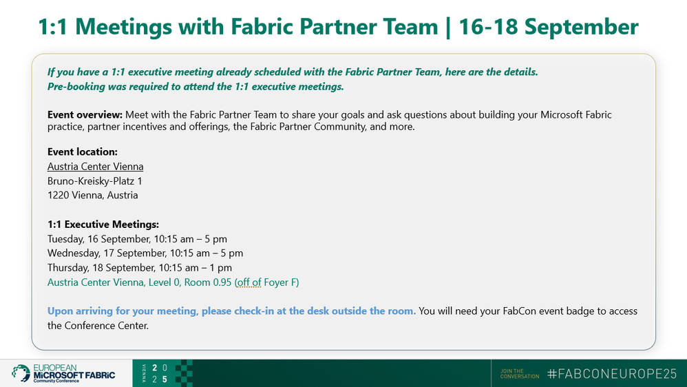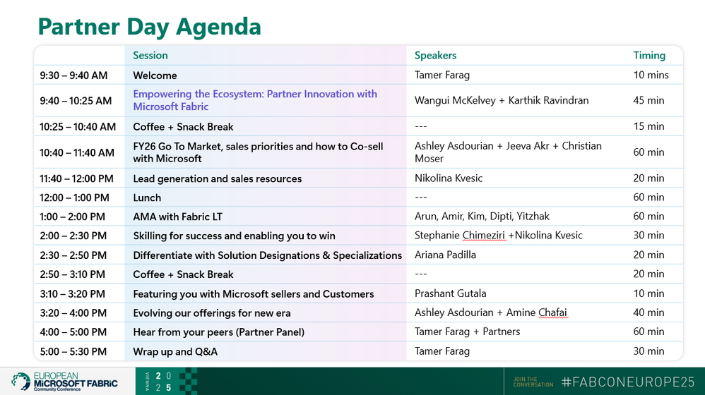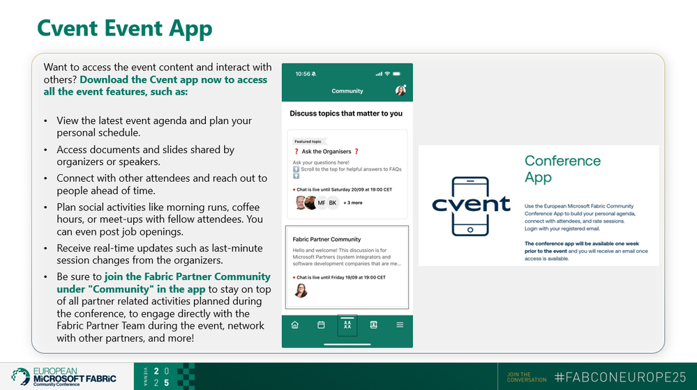 If you have any questions, please feel free to reach out to our team at mailto:FabricPartnersTeam@microsoft.com or through the Cvent app. See you very soon!