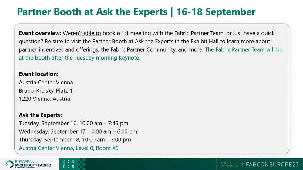 Sep 09, 2025Partner Know Before You Go to the 2025 European Microsoft Fabric Community Conference!
