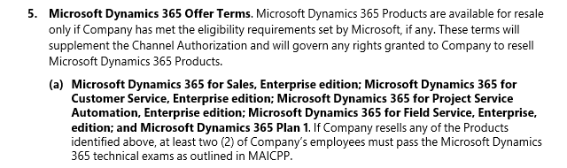 Certification requirement to sell and implement MS Dynamics 365