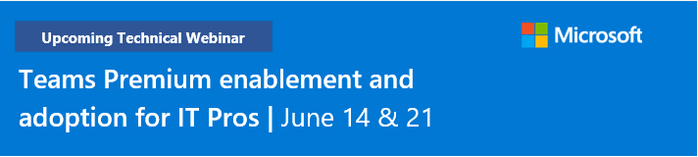 Join our Teams Premium | Enablement and adoption webinar for IT Professionals, CSP Partners and resellers on June 14th -or- June 21st.