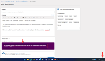 I think it would be helpful to have the autosave timestamp displayed in the user's local timezone.