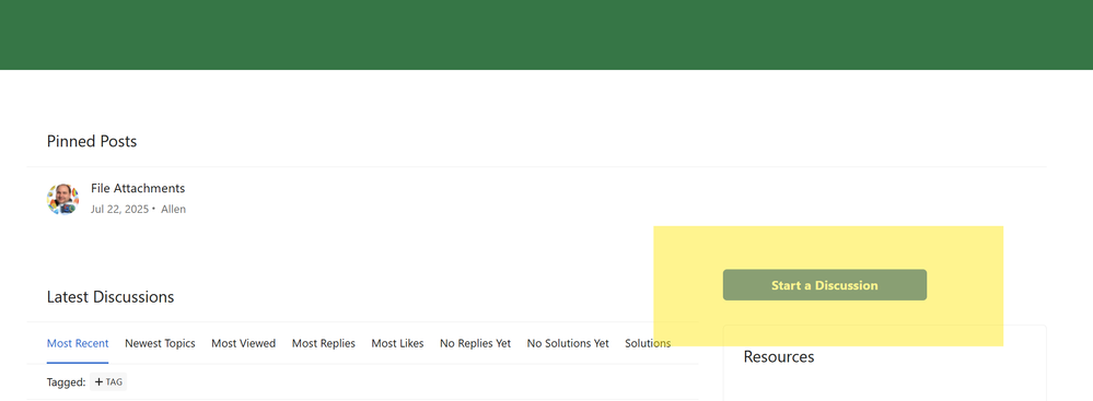 If you do not see this button you are probably not on the Discussion board page, to verify check the url you are on it should start https://techcommunity.microsoft.com/discussions/