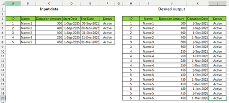 How to breakdown payments into single record for each month by Excel formula