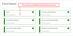 Hi there, I noticed that the number of unread posts disappeared in the spaces tiles on the start page of my communities. Please see the screenshot below. The number of unread posts was very u...