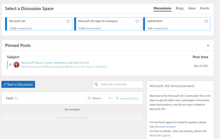 Hi, I navigate to the Microsoft 365 forum and I observe the forum is empty and it is look like the following: When I click on any Discussion spaces, I am able to see posts but in thi...