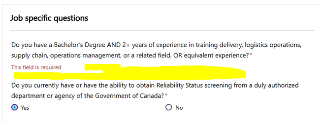 Radio buttons aren't functioning for a mandatory question in job application with Job ID - 200027012