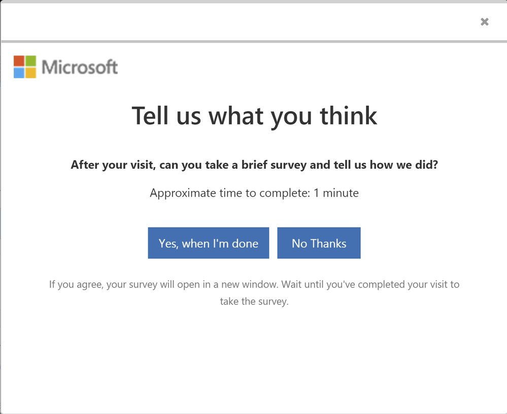 The 'annoyance' is the Value Analytics survey, we ask a few short questions, not more than once every 90 days, to ask users about their experience on the Microsoft Tech Community. Why ask more than once? well it allows us to track user satisfaction over time. If you dismiss the prompt it will not bother you again for another 2 weeks.