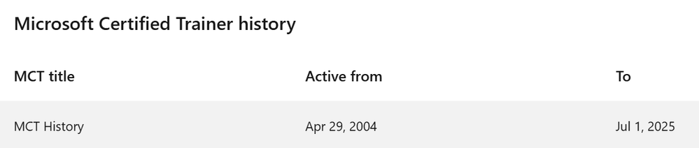 Sorry, I checked the Microsoft Certified Trainer history and it had been updated.
