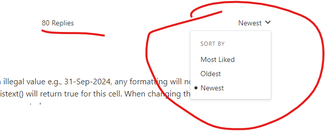 SergeiBaklan As you may have seen in this update Microsoft Tech Community Release Notes – 11/15/24 we have now made the default sort order across the community in comments to be newest to oldest and we have also made it so you can override that in your settings.