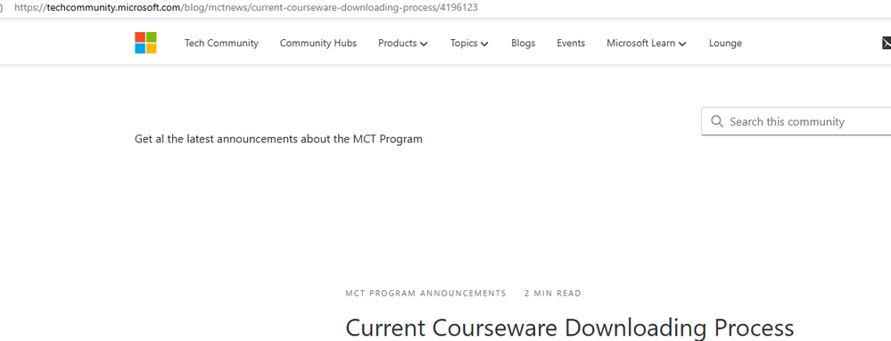 You've posted this in the Tech Community Discussion area which is intended for discussion about the Microsoft Tech Community website itself, rather than MCT questions. For MCT questions, please contact the MCT Team via the MCT Support forums for additional help.