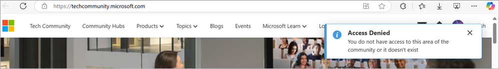 I am also getting the error access denied when trying to access Community Hub. I even opened in in-private window, and have cleared cookies as well.