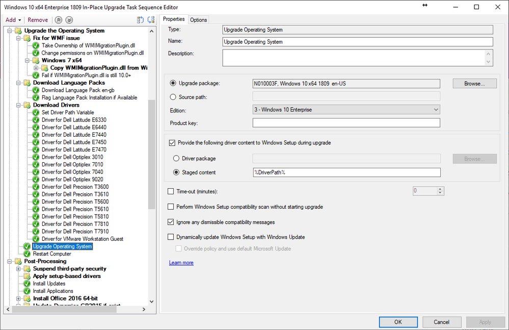 - Used latest OSD enterprise driver package from Dell
