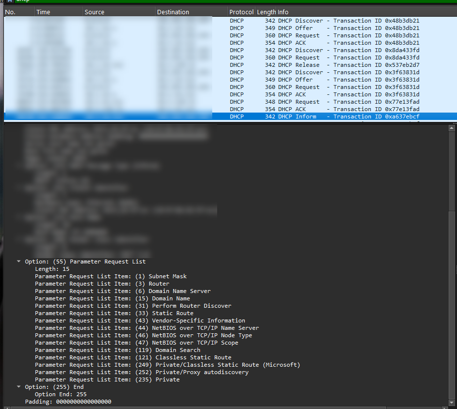 So we where able to see the DHCPINFORM request but there was any response.