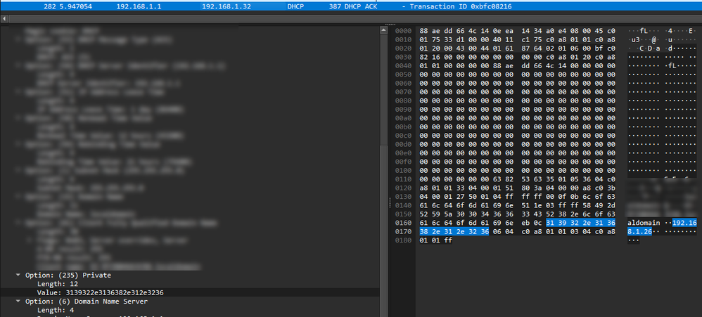 The DHCP ACK packet is where the client normally receives DHCP Option 235.