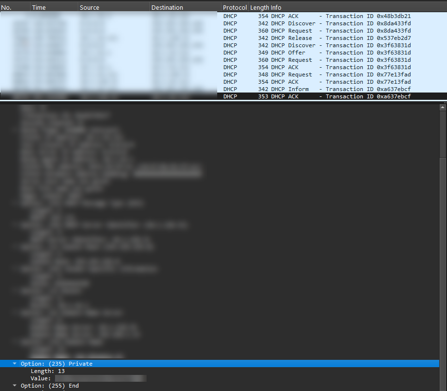 A potential issue arises when the DHCPINFORM request is either not forwarded by the firewall or core switch (which handles the IP helper function) or when the corresponding DHCP ACK response is blocked. In such cases, the client successfully obtains its IP address and basic DHCP options, but fails to receive Option 235, which is crucial for starting content downloads.