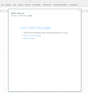 (* I don't know if it's the right hub to ask this question *) In Excel for Windows, I cannot enter the add-in store anymore, here is the message. `Can't reach this page`, `Make sure the web addr...