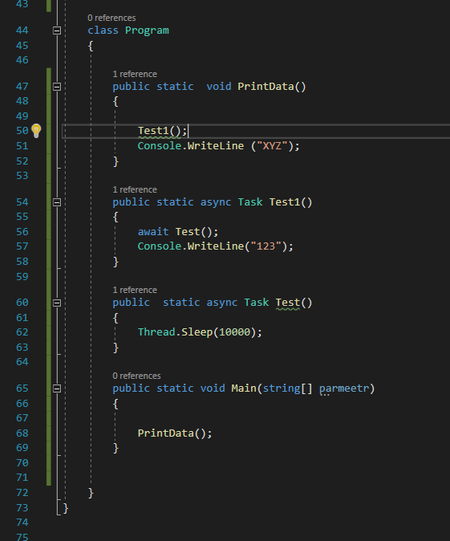 Why the output is like this 123 XYZ as per my understanding, it should print XYZ first, as I am not writing await in line no. 50