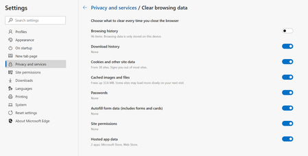 Clearing Browsing Data on Close