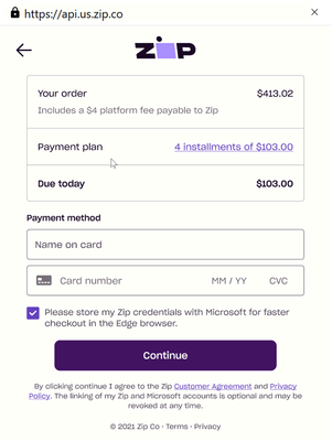 Usually, BNPL is offered in specific ecommerce websites like Target, Walmart. But now, Microsoft partners with 3rd party Zip (previously Quadpay) to offer a BNPL payment option at browser level. It means any purchase between $35 - $1,000 you make through Microsoft Edge can be split into 4 installments over 6 weeks.