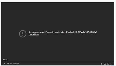 Image description: a black video player screen that says, “An error occurred. Please try again later.”