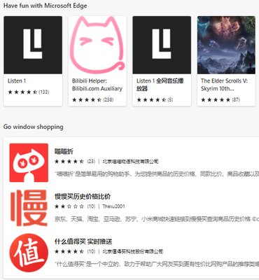 User Feedback #1: Categories in Edge Add-ons are useful to find extensions for specific jobs to be done. But these categories are not locale-specific, and the order of curated extensions are generic.