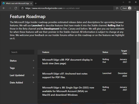 New Feature Roadmap now up on the What's Next page of the Microsoft Edge Insider site