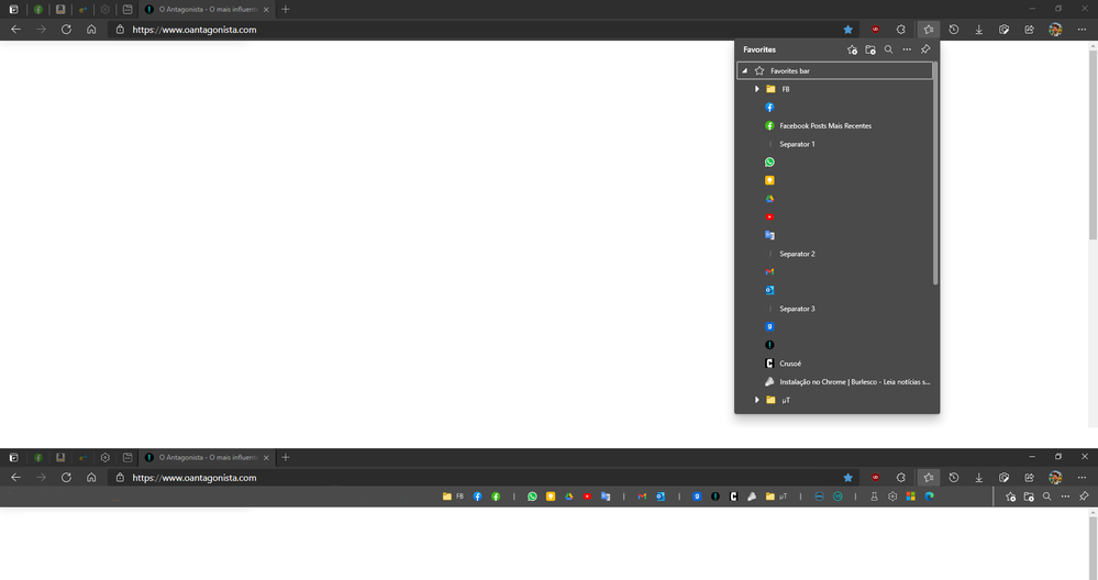 Edge could have an option by which the user could choose whether to click on the Favorites button he wants to see the favorites menu diagrammed vertically (first image) or horizontally (second image)...