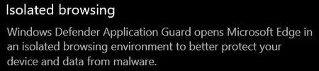 I had just put this (hang on) in a couple of other MS Tech Forums to which, I contribute. Then take a look at the window produced if you, in Edge C > ellipsis > New Application Guard window. ...