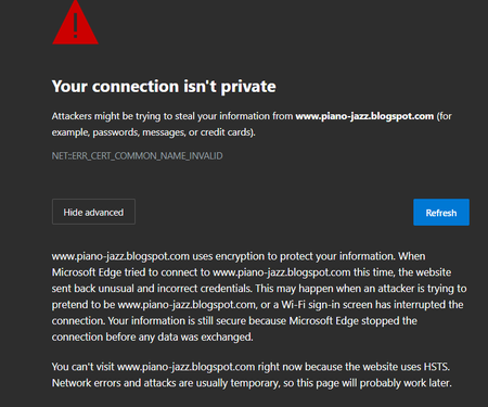 Having trouble loading the site: https://www.piano-jazz.blogspot.com/. Each time I try I receive the following alert:
